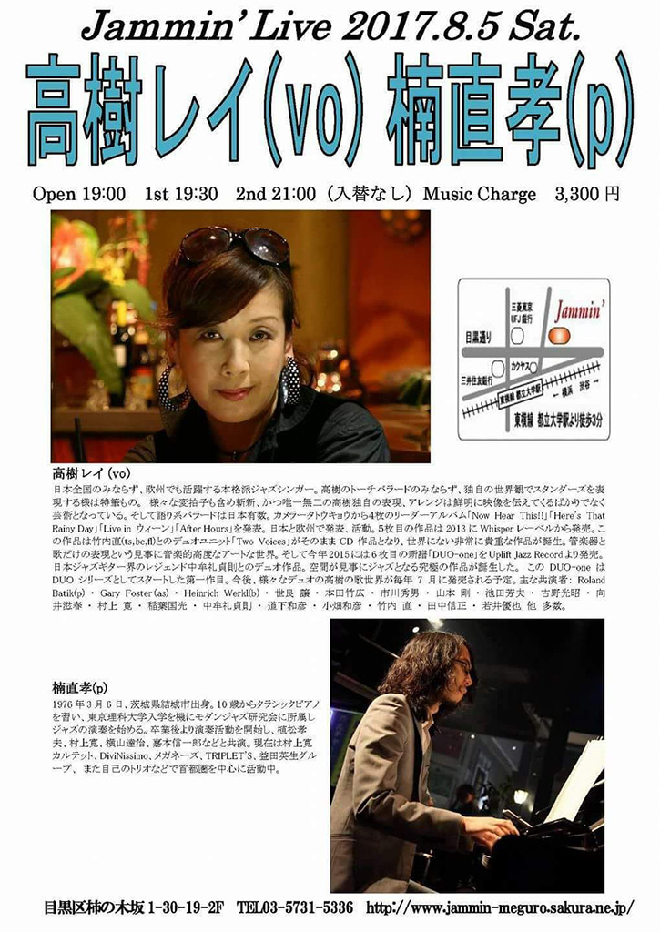 都立大学【 JAMMIN 】 楠 直孝(pf) デュオ Stage 19:30~ ・目黒区柿の木坂1-30-19 グレース柿の木坂2F TEL 03-5731-5336
